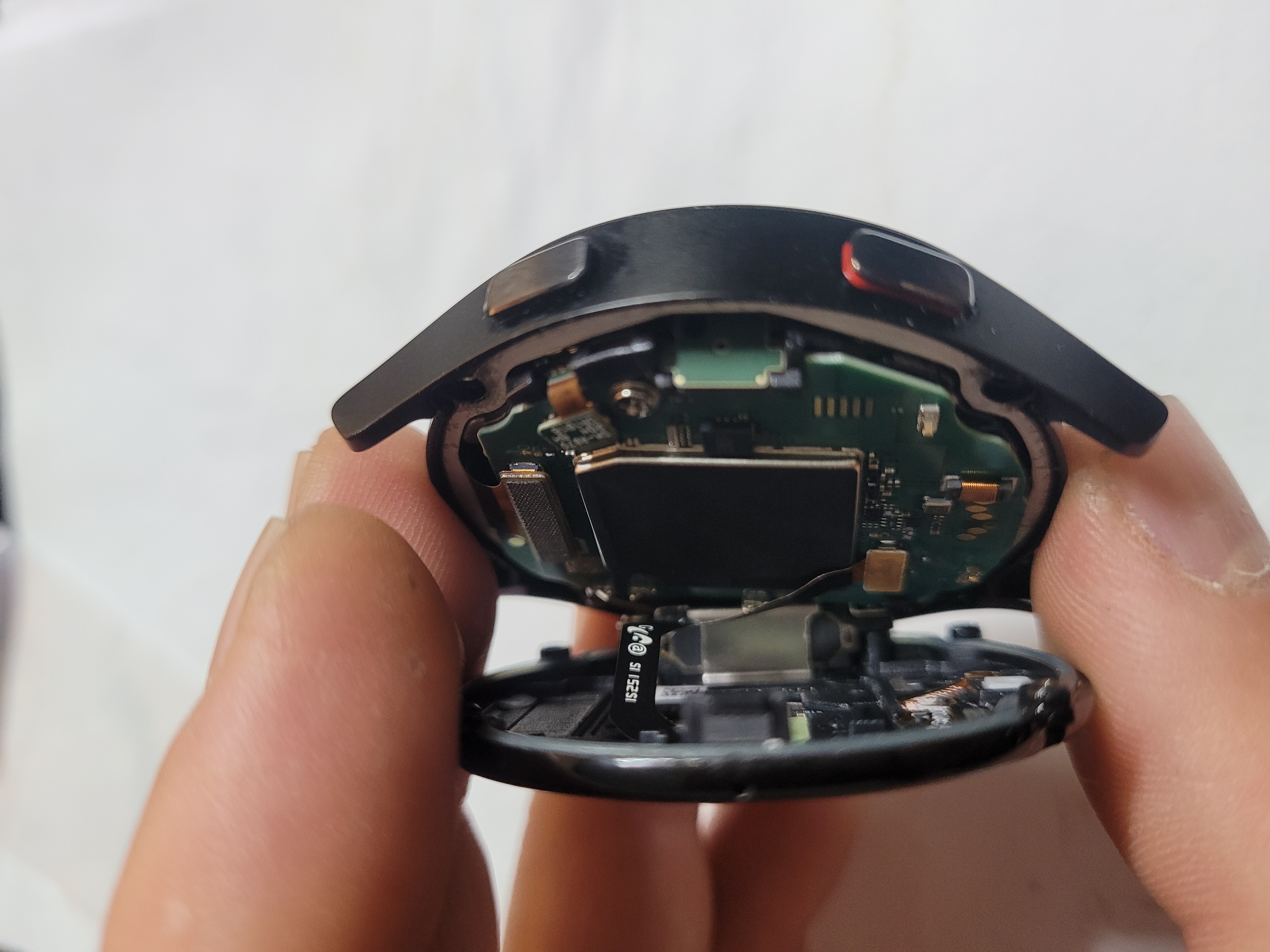 뒷커버를 바로 제거하시면 사진에 보이는 심박및 여러 센서 부품 이어주는 케이블이 끈어질수 있기 때문에 살짝 열어서